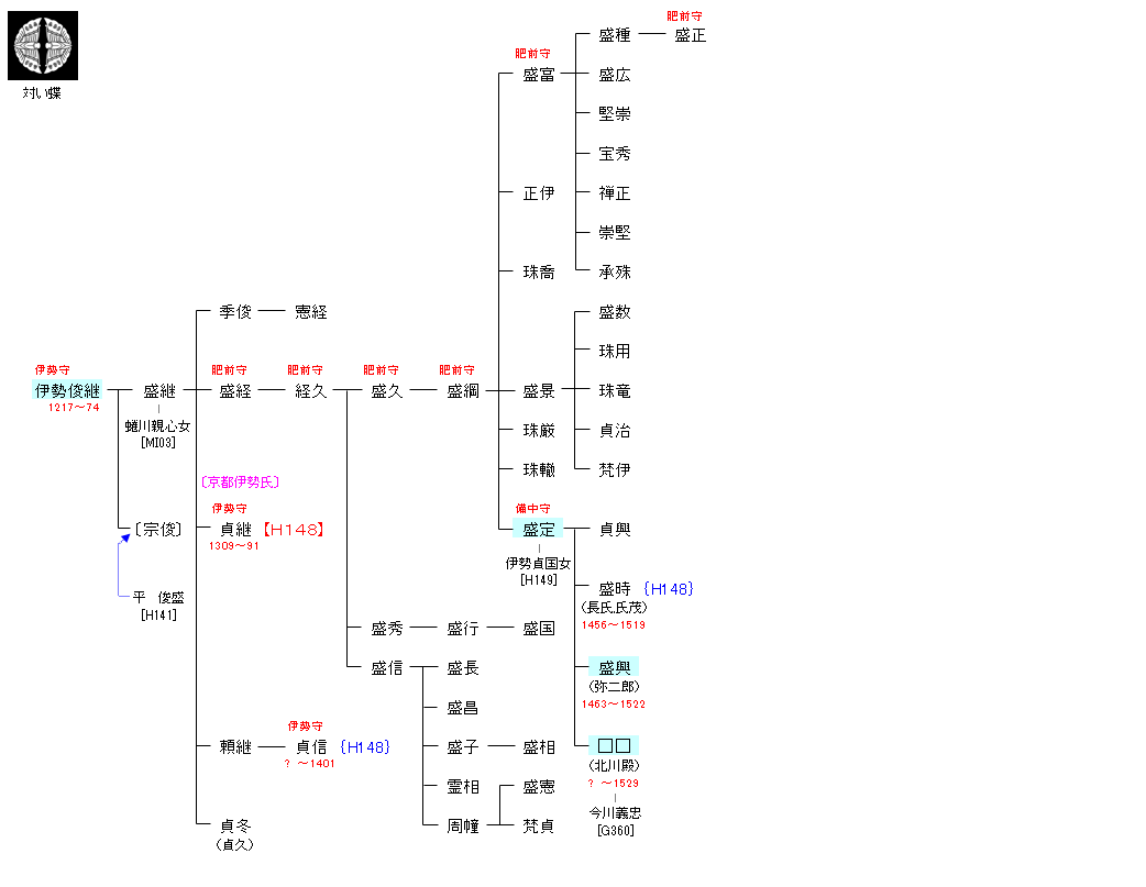 | H141:平 季衡 | 平 高望 ― 平 良望 ― 平 維衡 ― 平 季衡 ― 伊勢俊継 | H147:伊勢俊継 |