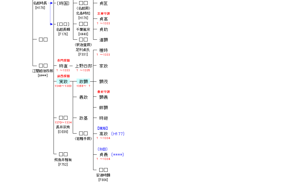 | H171:北条時方 | 平 高望 ― 平 良望 ― 北条時方 ― 北条実泰 | H179:北条実泰 | ● |