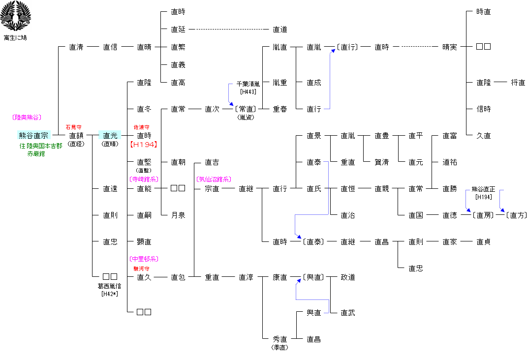 | H187:熊谷直貞 | 平 高望 ― 平 良望 ― 熊谷直貞 ― 熊谷直宗 | H193:熊谷直宗 |