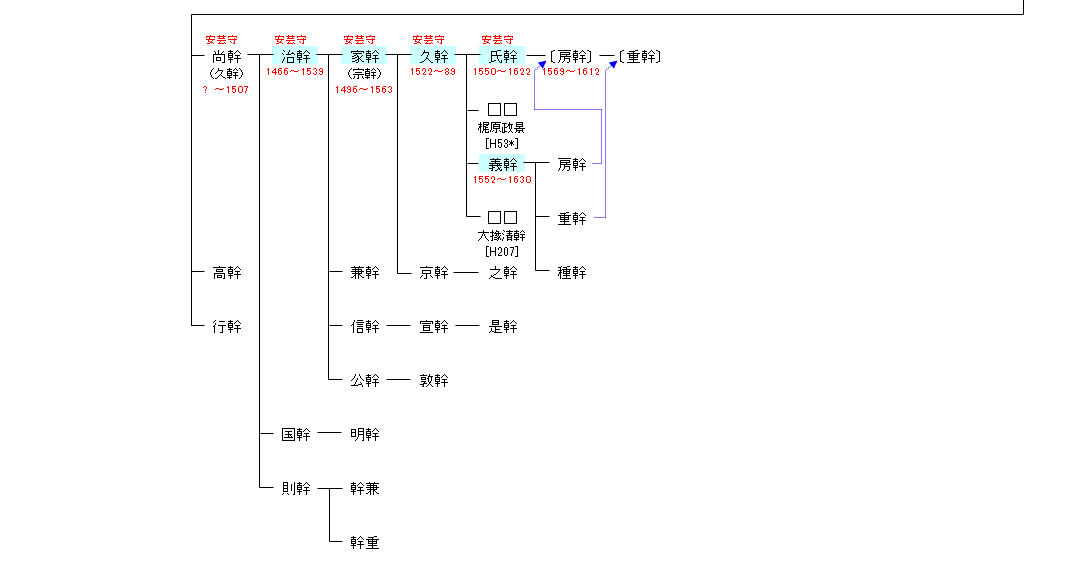 | H202:多気致幹 | 平 高望 ― 平 良望 ― 平 維幹 ― 多気致幹 ― 真壁長幹 | H204:真壁長幹 | ● |
