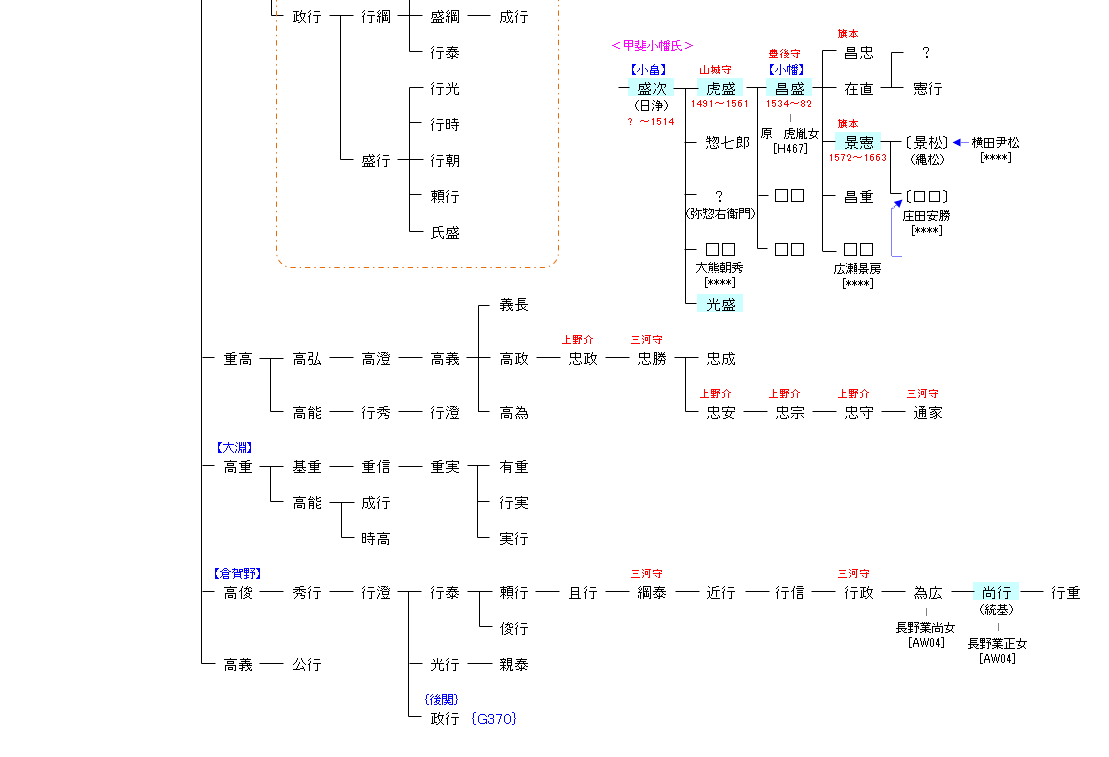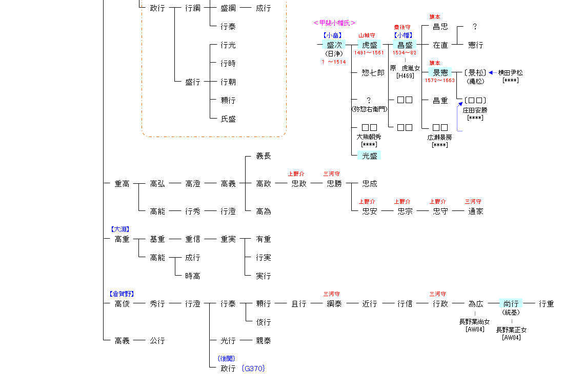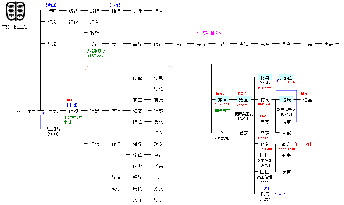| H402:平 将常 | 平 高望 ― 平 良文 ― 平 将常 ― 秩父行重 | H413:秩父行重 |