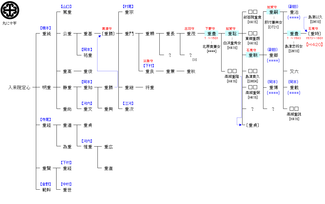 | H413:渋谷重国 | 平 高望 ― 平 将常 ― 渋谷重国 ― 入来院定心 | H419:入来院定心 |