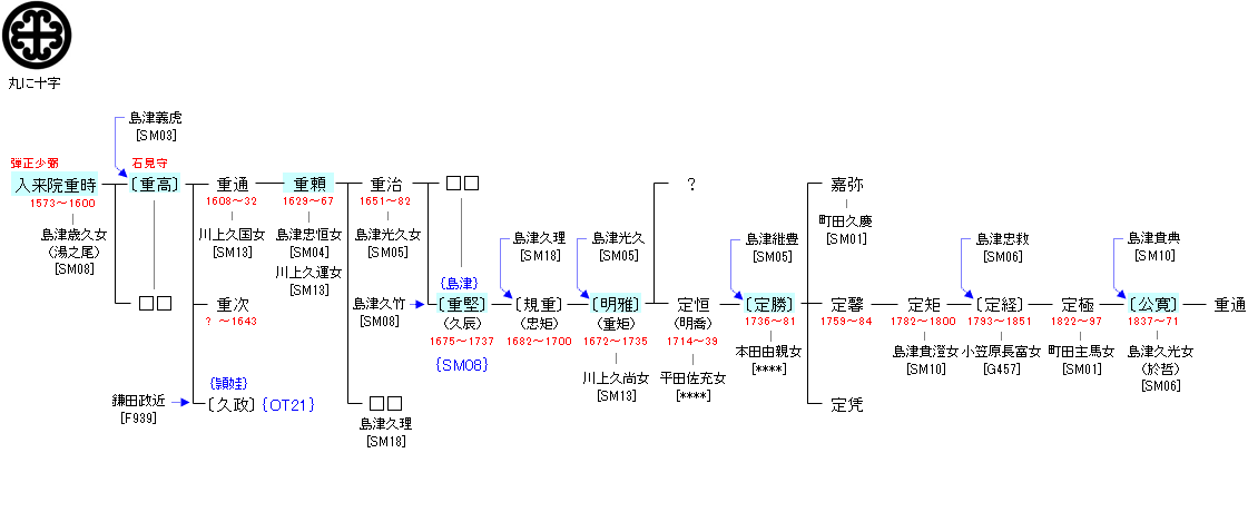 | H419:入来院定心 | 平 高望 ― 平 将常 ― 渋谷重国 ― 入来院定心 ― 入来院重時 | H420:入来院重時 | ● |