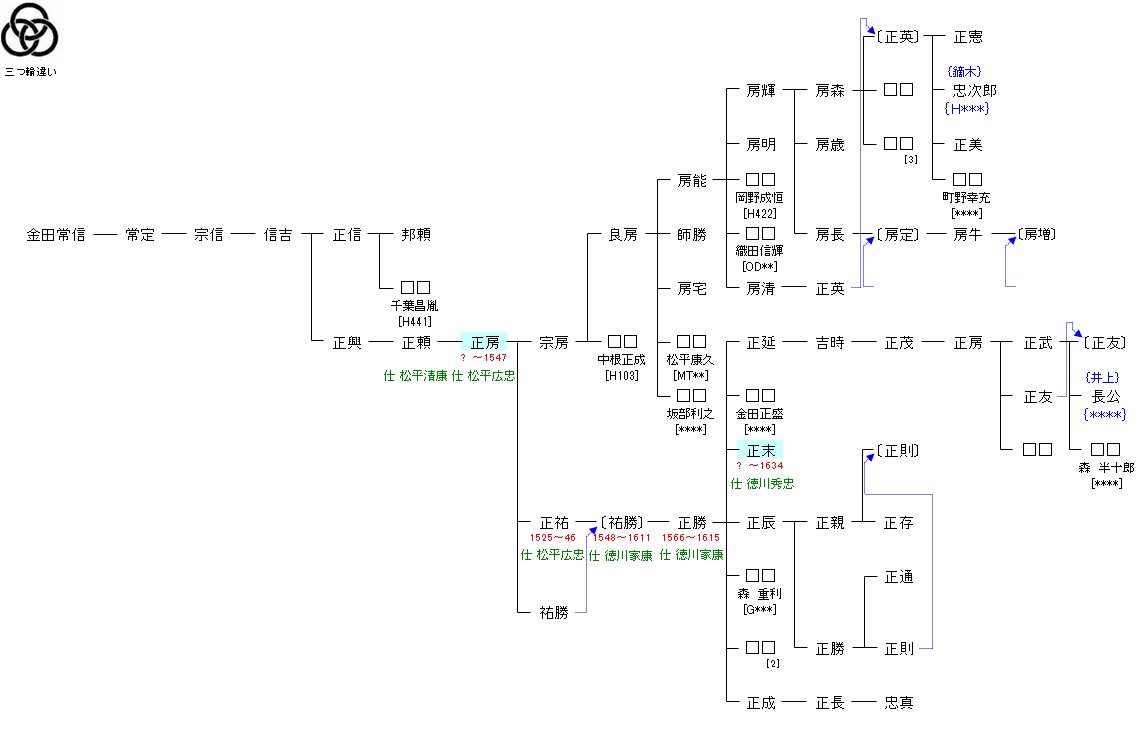 | H445:白井胤時 | 桓武天皇 ― 平 高望 ― 平 忠常 ― 千葉常重 ― 千葉胤政 ― 白井胤時 ― 金田常信 | H446:金田常信 | ● |