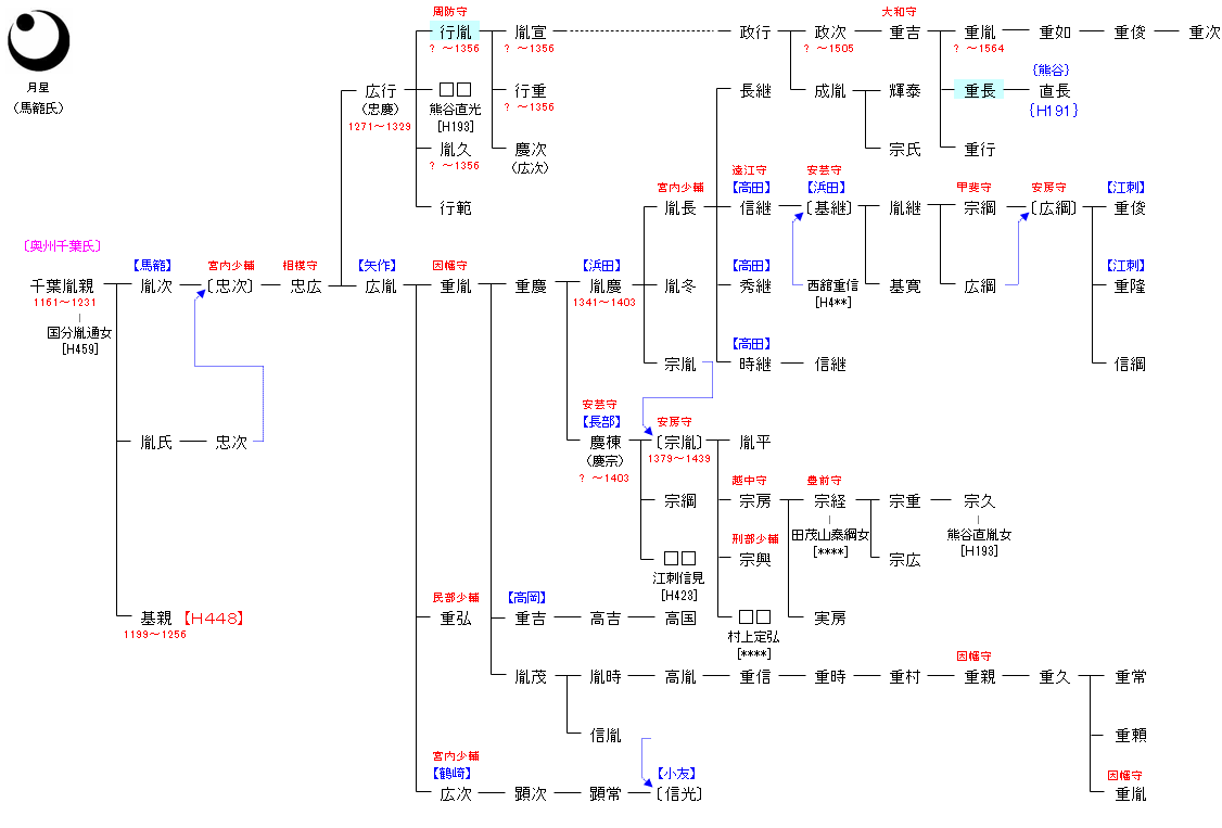 | H440:千葉胤政 | 桓武天皇 ― 平 高望 ― 平 忠常 ― 千葉常重 ― 千葉胤政 ― 千葉胤親 | H447:千葉胤親 |