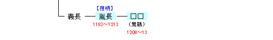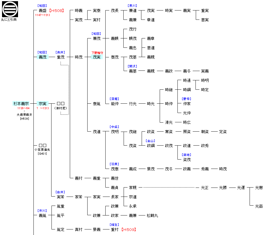 | H502:三浦義明 | 平 高望 ― 平 将常 ― 平 忠通 ― 三浦義明 ― 杉本義宗 | H507:杉本義宗 |
