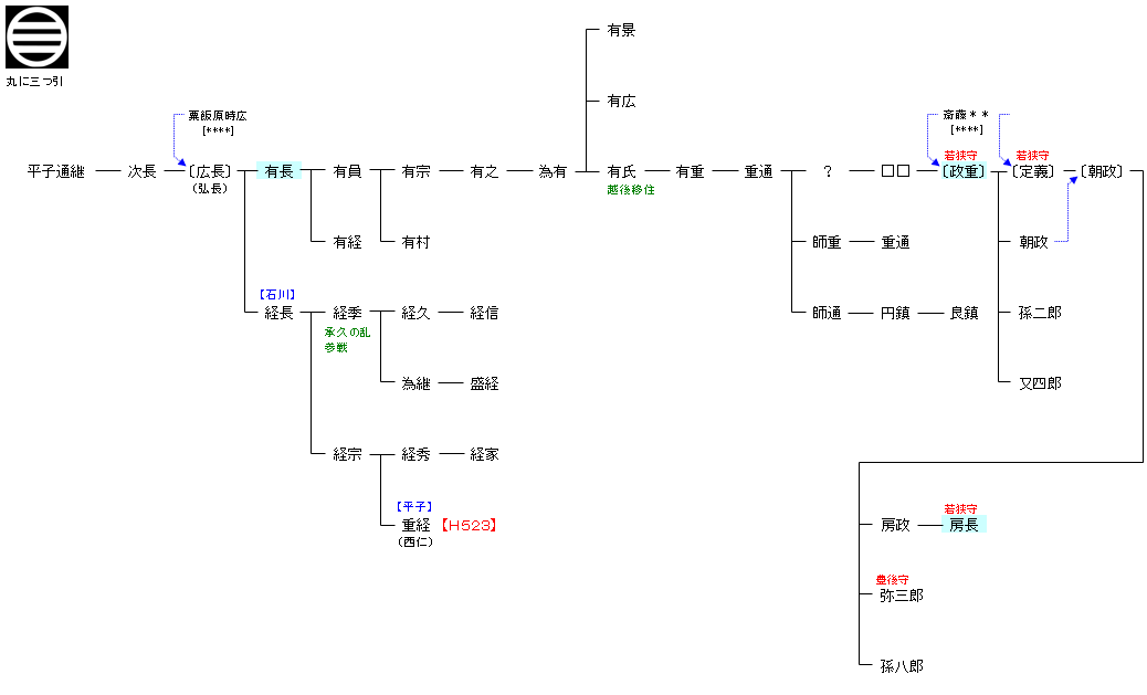 | H501:平 忠通 | 平 高望 ― 平 将常 ― 平 忠通 ― 平子通継 | H526:平子通継 |