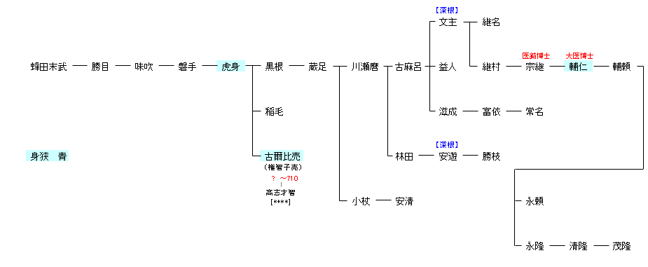 身狭氏は、『新撰姓氏録』左京諸藩下に「牟佐村主」とあり、呉の孫権の子孫で仁徳天皇の御世に渡来し、大和国檜隈に居住したという。 |