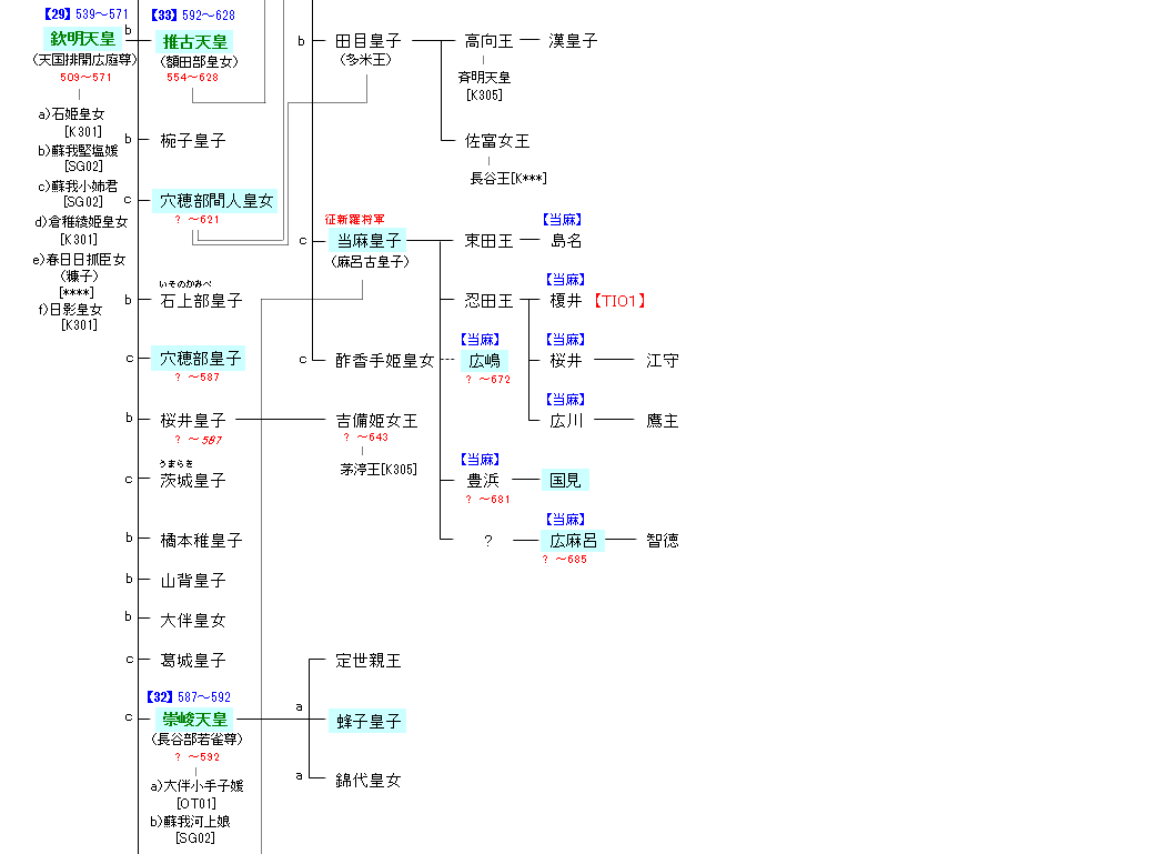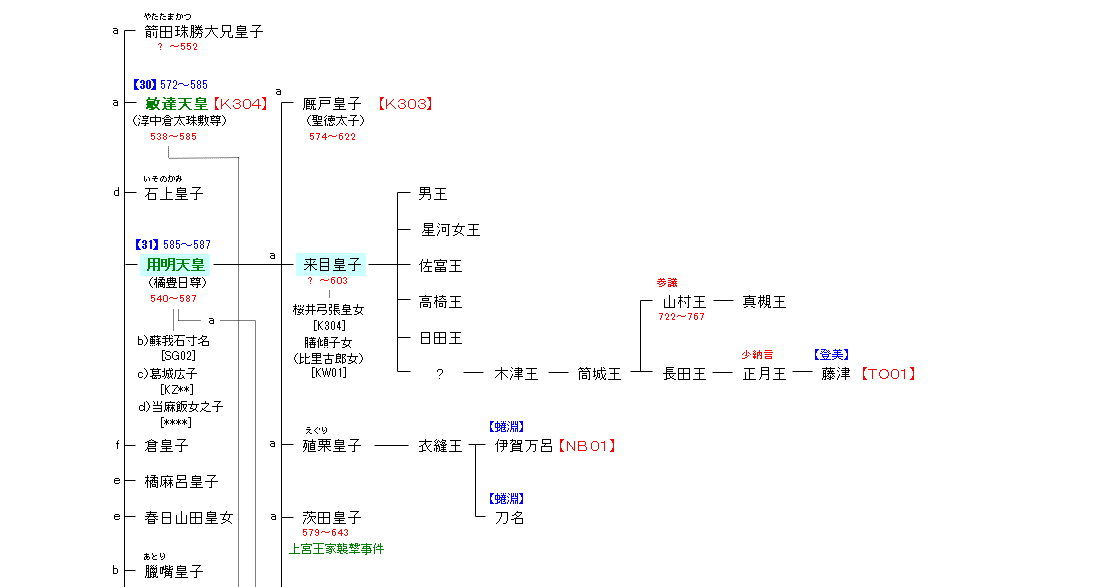 | K301:継体天皇 | 応神天皇 ― 継体天皇 ― 欽明天皇 | K302:欽明天皇 |