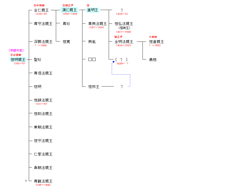 | K335:亀山天皇 | 亀山天皇 ― 恒明親王 | K337:恒明親王 | ● |