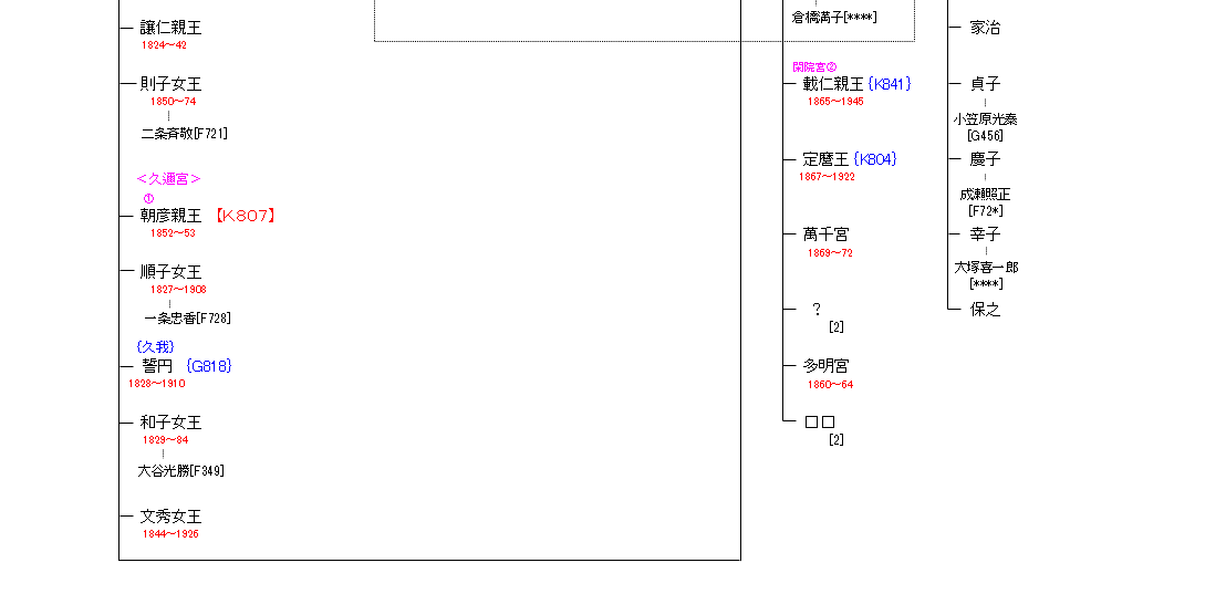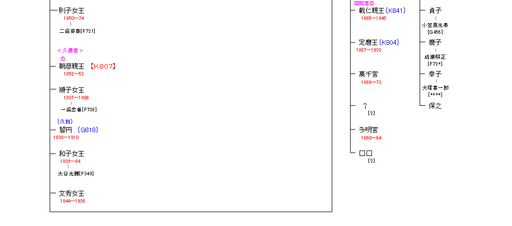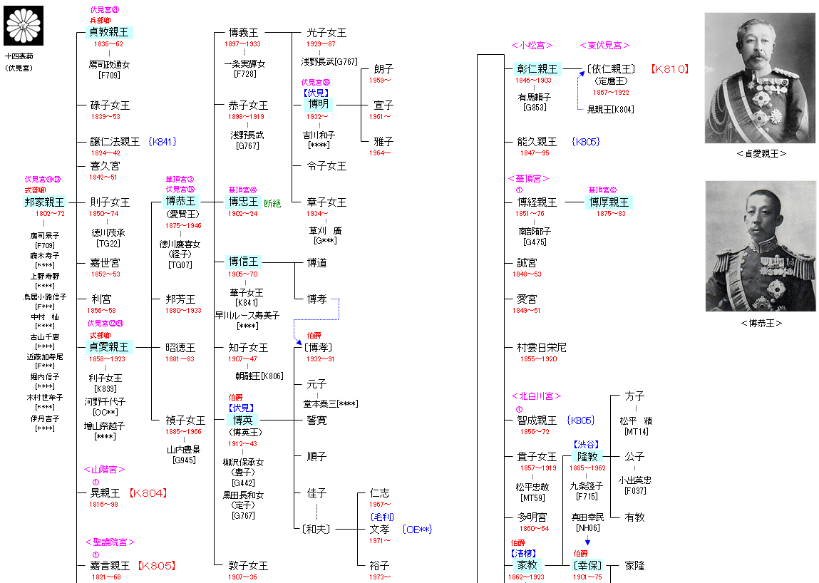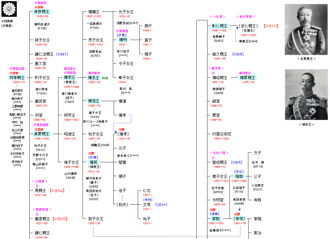 | K802:伏見宮貞清親王 | (栄仁親王)― 貞常親王 ― 貞清親王 ― 邦家親王 | K803:伏見宮邦家親王 |