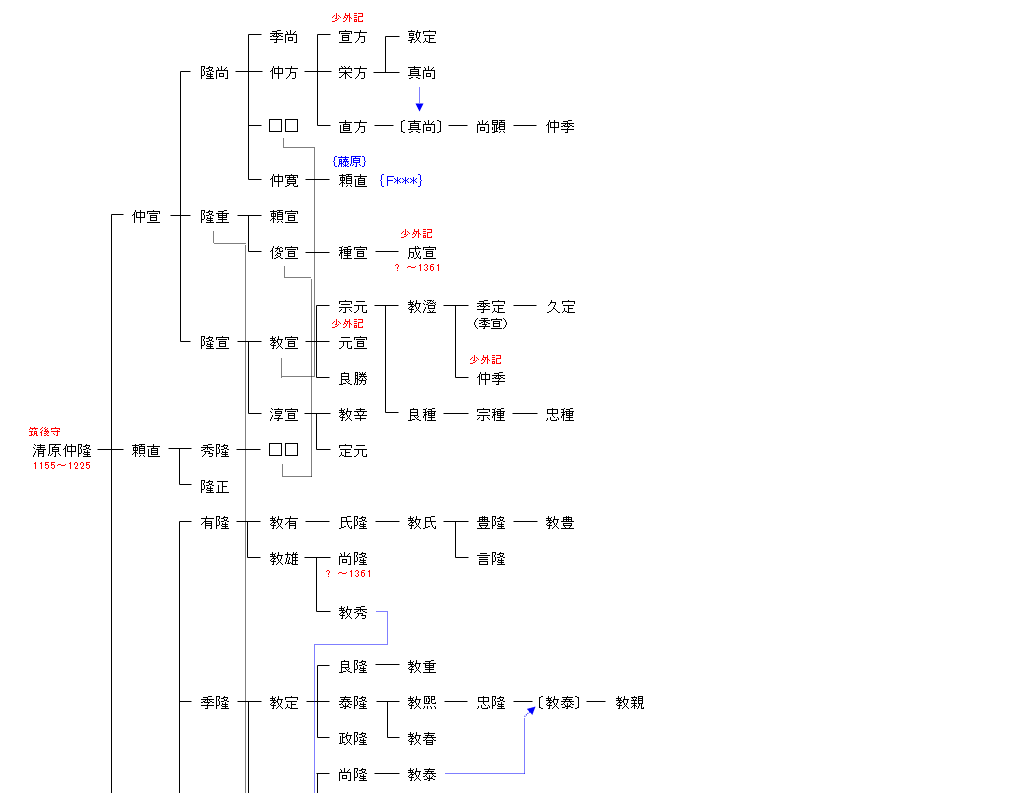 | KH05:清原頼業 | 清原有雄 ― 清原業恒 ― 清原広澄 ― 清原頼業 ― 清原仲隆 | KH06:清原仲隆 | ● |