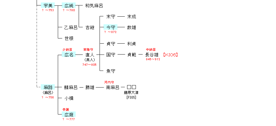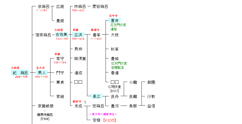 | KI03:紀 大人 | 紀 角 ― 紀 大人 ― 紀 麻呂 | KI04:紀 麻呂 |