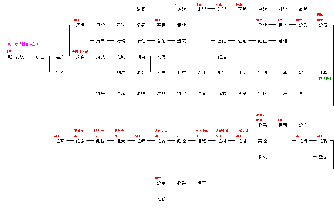 紀 角 ― 紀 大人 ― 紀 麻呂 ― 紀 安根