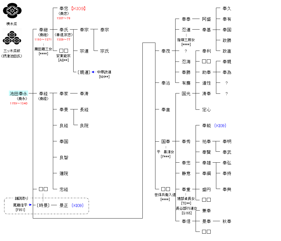 紀 角 ― 紀 大人 ― 紀 古麻呂 ― 池田維実 ― 池田奉永