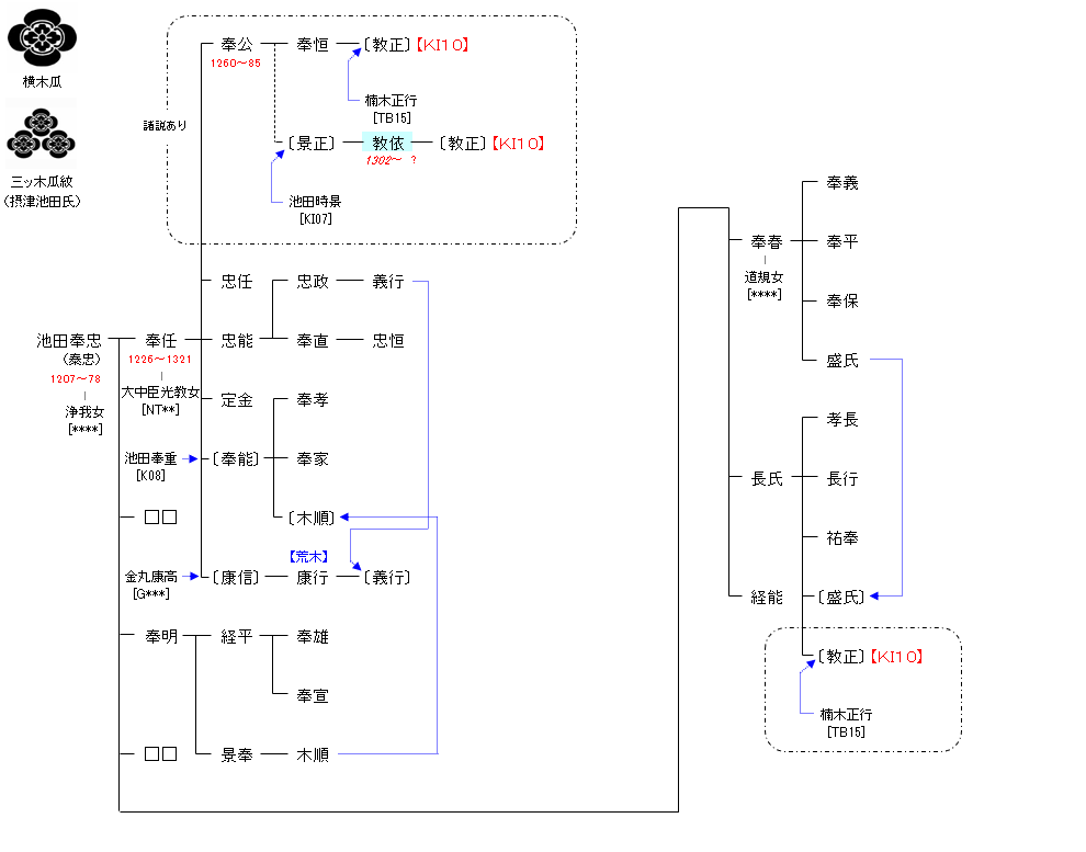 紀 角 ― 紀 大人 ― 紀 古麻呂 ― 池田維実 ― 池田奉永 ― 池田奉忠