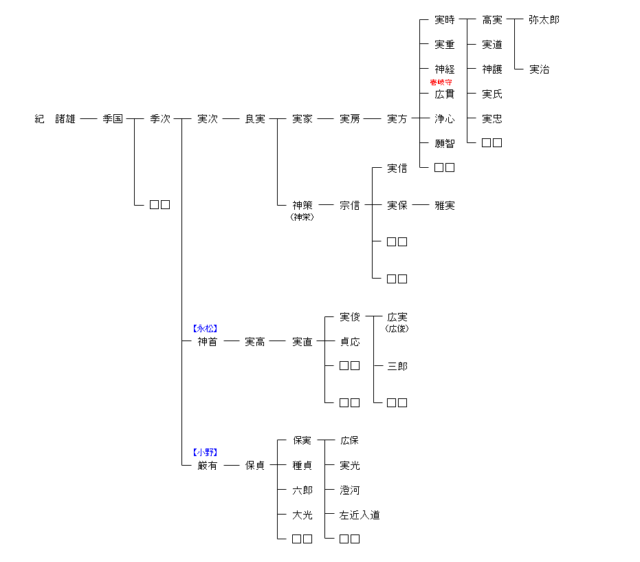 紀 角 ― 紀 大人 ― 紀 麻呂 ― 紀 長谷雄 ― 紀 諸雄