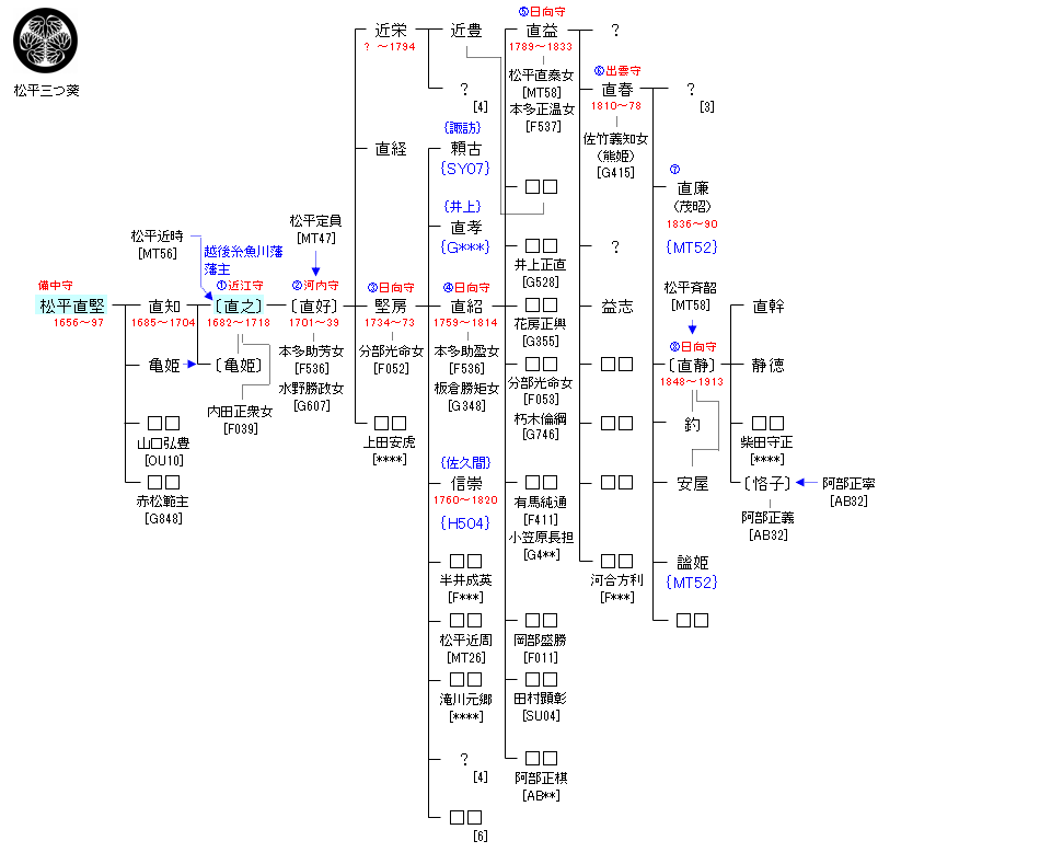 | MT51:結城秀康 | 徳川家康 ― 結城秀康 ― 松平直堅 | MT53:松平直堅 | ● |