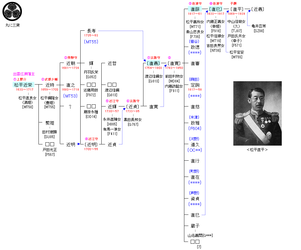 | MT55:松平直政 | 徳川家康 ― 結城秀康 ― 松平直政 ― 松平近栄 | MT56:松平近栄 | ● |