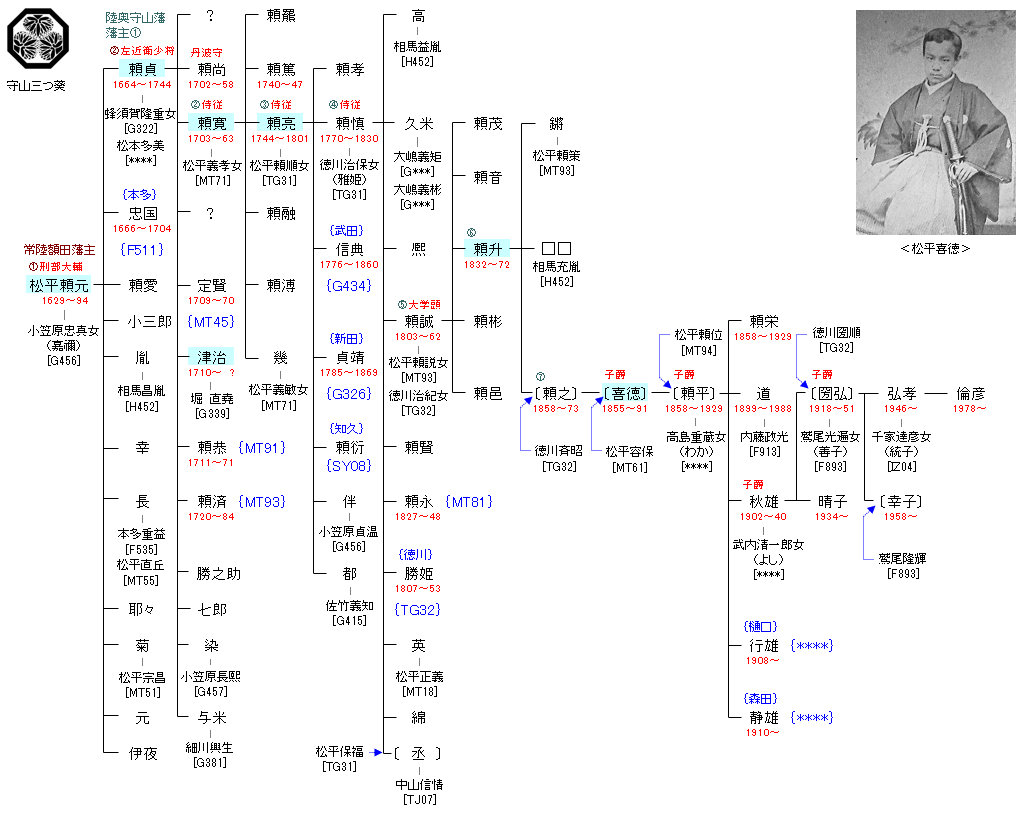 | TG31:徳川頼房 | 徳川家康 ― 徳川頼房 ― 松平頼元 | MT92:松平頼元 | ● |
