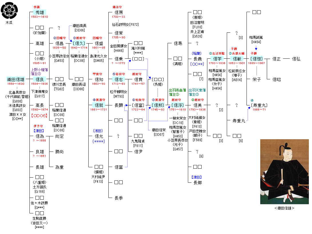 | OD04:織田信長 | 織田親真 ― 織田敏定 ― 織田信秀 ― 織田信長 ― 織田信雄 | OD05:織田信雄 |