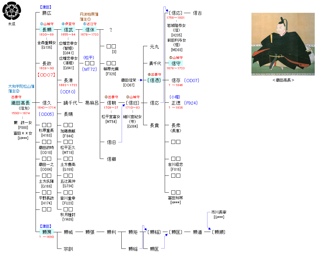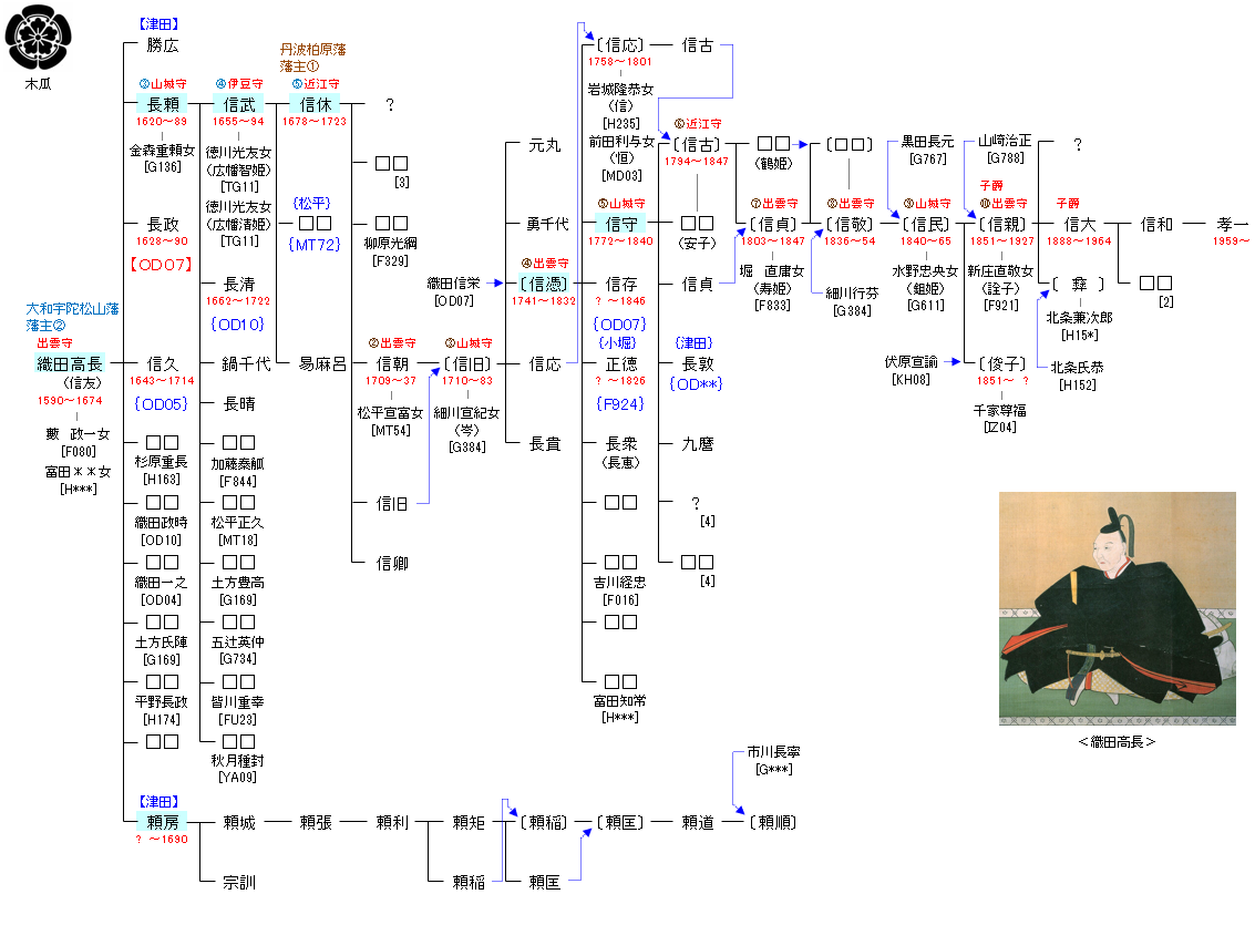 | OD05:織田信雄 | 織田親真 ― 織田敏定 ― 織田信秀 ― 織田信長 ― 織田信雄 ― 織田高長 | OD06:織田高長 |