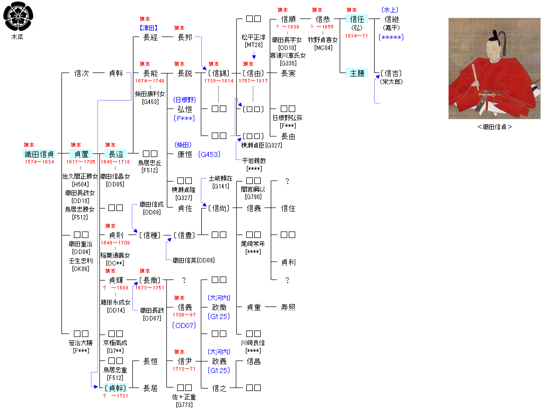 | OD04:織田信長 | 織田親真 ― 織田敏定 ― 織田信秀 ― 織田信長 ― 織田信貞 | OD08:織田信貞 | ● |