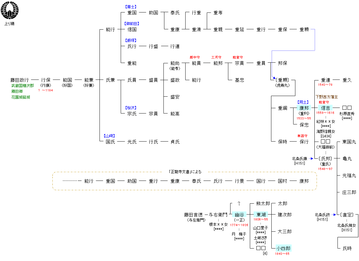 当初は山内上杉家に仕え、天神山城を守っていたが、天文15年(1546年)の河越城の戦いの後、北条氏康の攻撃を受けて降伏し、その家臣となった。このとき、氏康の4男・乙千代丸(氏邦)を幼少から養子として育て、娘の大福御前を娶らせて藤田氏の家督を譲っている。そして自らは用土城に居城を移し、用土氏を称した。名を重利から康邦に改めたのもこの頃とされる。ただし、以上の事蹟については異説も多く存在し、生没年など康邦の実像は解明されていない部分も多い。 康邦の子には用土重連や藤田信吉がいたが、彼らは北条氏にとっては邪魔な存在であり、重連は沼田城代に任じられたものの氏邦に毒殺され、信吉は武田勝頼に寝返っている。