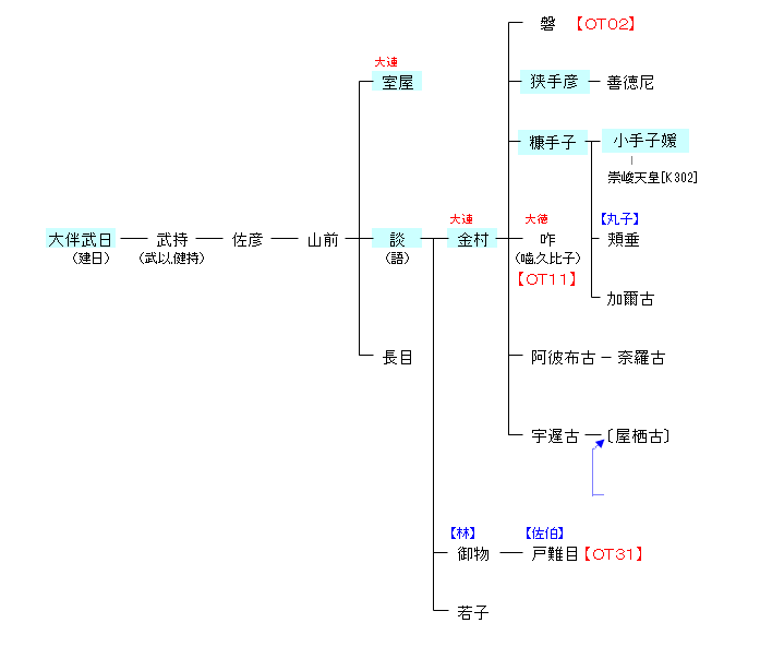 | A202:安牟須比命 | 安牟須比命 ― 大伴武日 | OT01:大伴武日 |