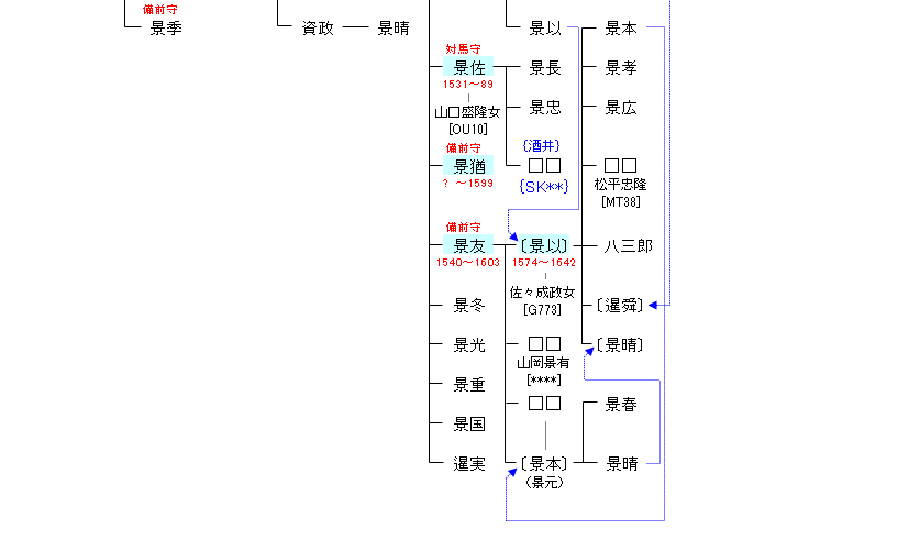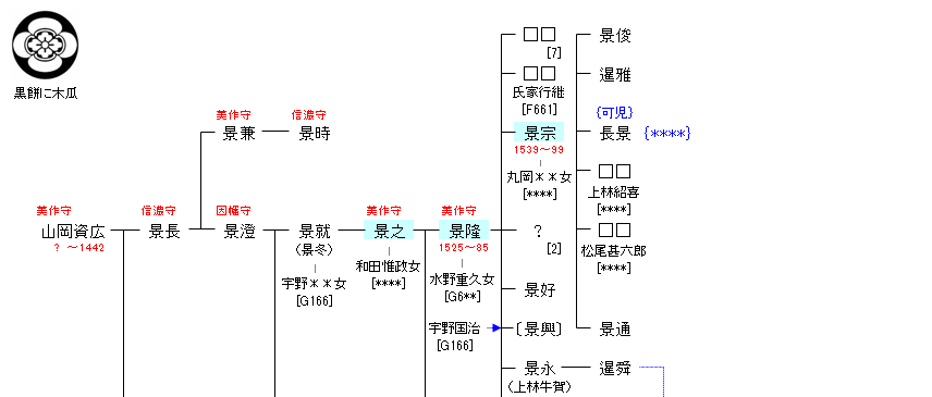大伴武日 ― 大伴 咋 ― 伴 清助 ― 富永資隆 ― 設楽資乗 ― 山岡資広 |