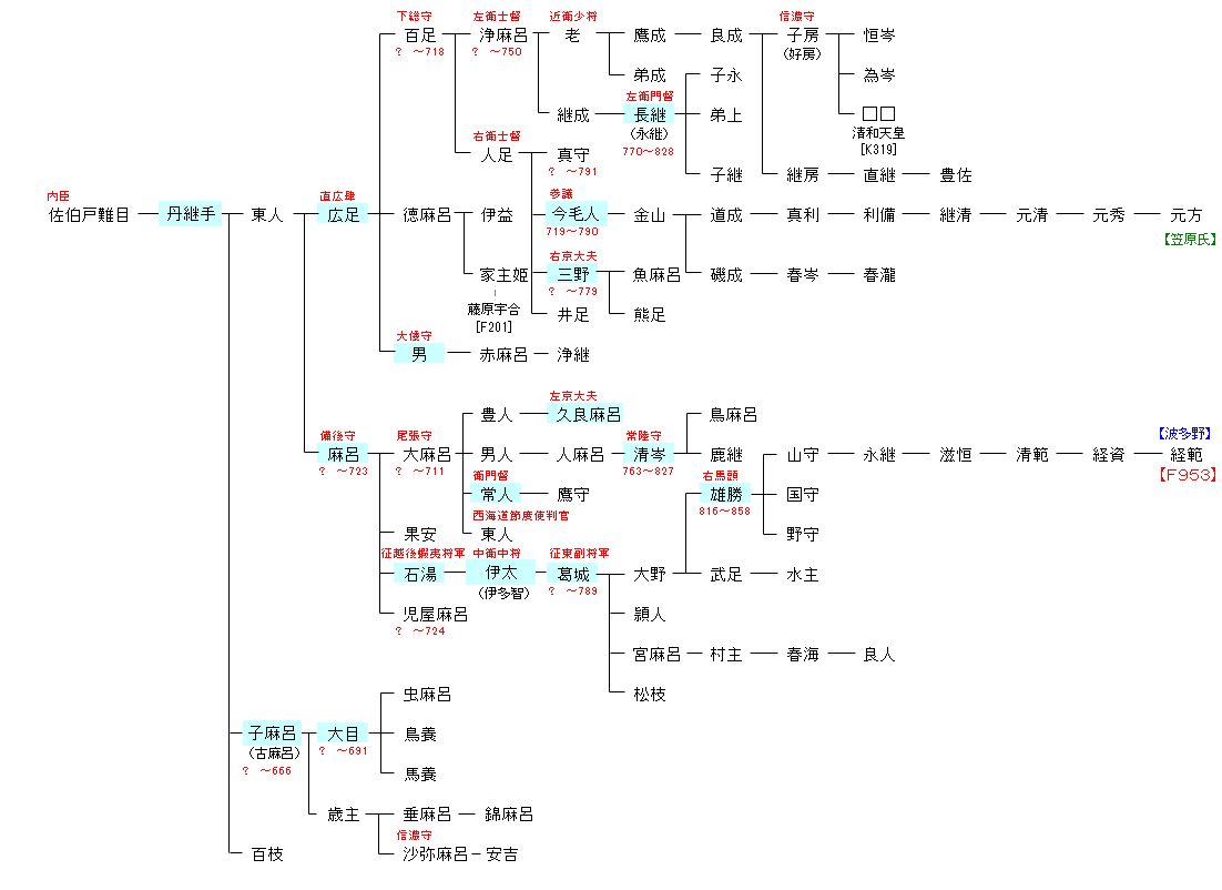 天平宝字8年(764年)藤原仲麻呂の乱終結後に行われた叙位において従五位下に叙爵し、天平神護3年(767年)豊後守に任ぜられる。 光仁朝に入り、宝亀2年(771年)民部少輔として京官に遷る。宝亀5年(774年)従五位上・近江介に叙任され再び地方官に転じる。宝亀7年(776年)5月初旬に出羽国志波村で蝦夷が反乱を起こしたことから、同月中旬に蝦夷征討のために陸奥鎮守権副将軍を兼ねる。また同年皇太子・山部親王の春宮亮に任ぜられている。 天応元年(781年)4月の山部親王の即位(桓武天皇)に伴って従四位下に再び昇叙され、5月には中衛中将に任ぜられている。その後、延暦4年(785年)従四位上に叙せられ、延暦5年(786年)には左京大夫に遷っている。 |