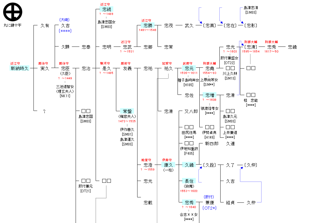 | SM02:島津忠宗 | 島津忠久 ― 島津忠宗 ― 新納時久 | SM15:新納時久 | ● |
