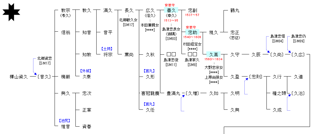 | SM02:島津忠宗 | 島津忠久 ― 島津忠宗 ― 樺山資久 | SM16:樺山資久 | ● |