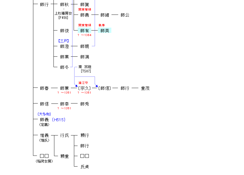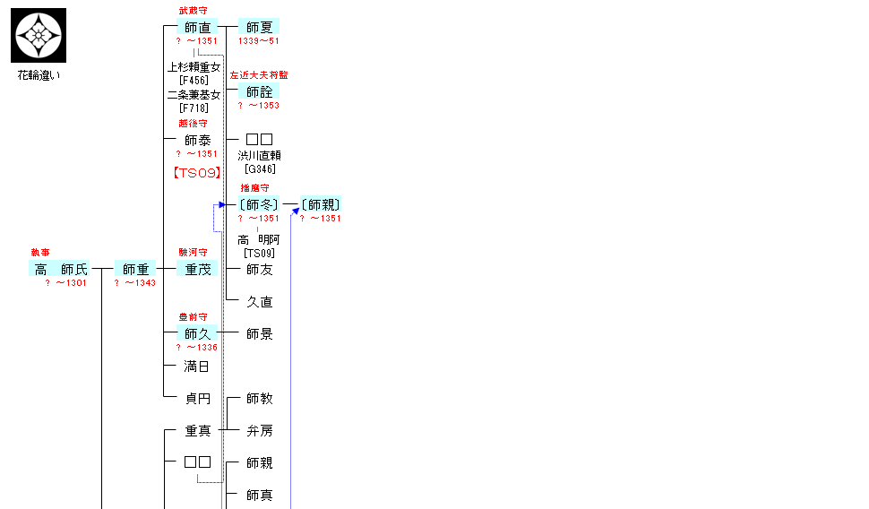 | TS07:高 惟重 | 高階峰緒 ― 高階業遠 ― 大高惟頼 ― 高 惟重 ― 高 師氏 | TS08:高 師氏 |