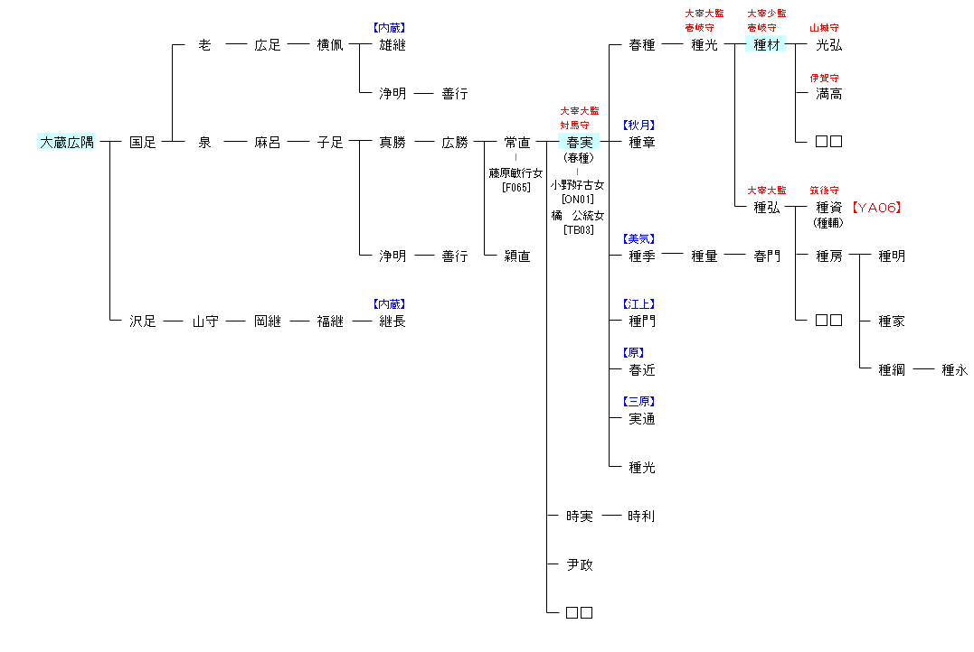 | YA02:東漢爾波伎 | 東漢 掬 ― 東漢爾波伎 ― 大蔵広隅 | YA05:大蔵広隅 |