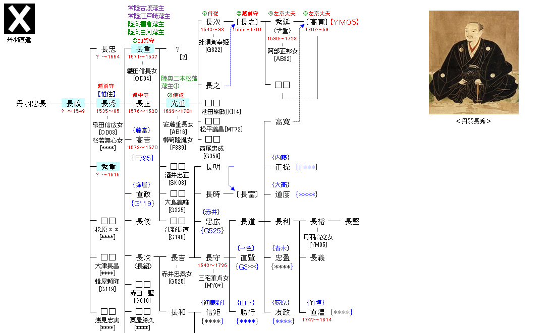 丹羽氏の出自は三説ある。一つ目は藤原姓とするもので、関白・藤原道隆の子・伊周の次男・遠峰の末流とする武蔵国春日井郡児玉党の一族で、忠長が尾張国丹羽郡児玉村に移って丹羽氏を称して、守護の斯波氏に仕えたとする。二つ目は平姓とするもので、建仁元年(1201年)に梶原景高の子・豊丸(景親)が尾張丹羽郡羽黒村に逃れてきたときの7人の従者のうちのひとりの丹羽家兼の末裔とするものである。三つ目は桓武天皇の皇子・良岑安世の裔孫と称するもので、忠長を29代子孫とする良岑姓である(ここでは三つ目の説を示す)。『丹羽家譜』では、2回改姓したとあり、平姓から藤原姓にして、最後に良岑姓に戻したとある。 長政は斯波義統に仕えて武功があったという。天文18年(1549年)に亡くなる。跡を継いだ長男の長忠も同じく義統の家臣で、天文23年(1554年)7月12日、守護代・織田信友が清洲城を奇襲した清洲合戦で戦死して、無嗣断絶となったため、織田信長家臣の次男の長秀が本流となった。