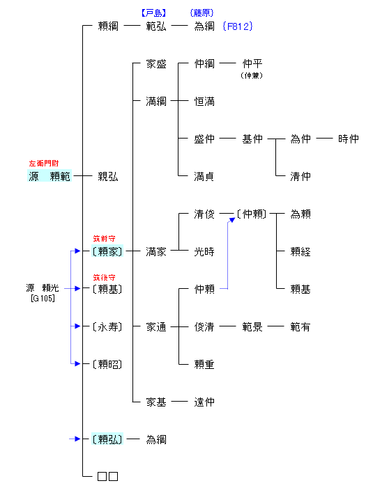| G105:源 頼光 | 源 経基 ― 源 頼光 ― 源 頼範 | G152:源 頼範 | ● |