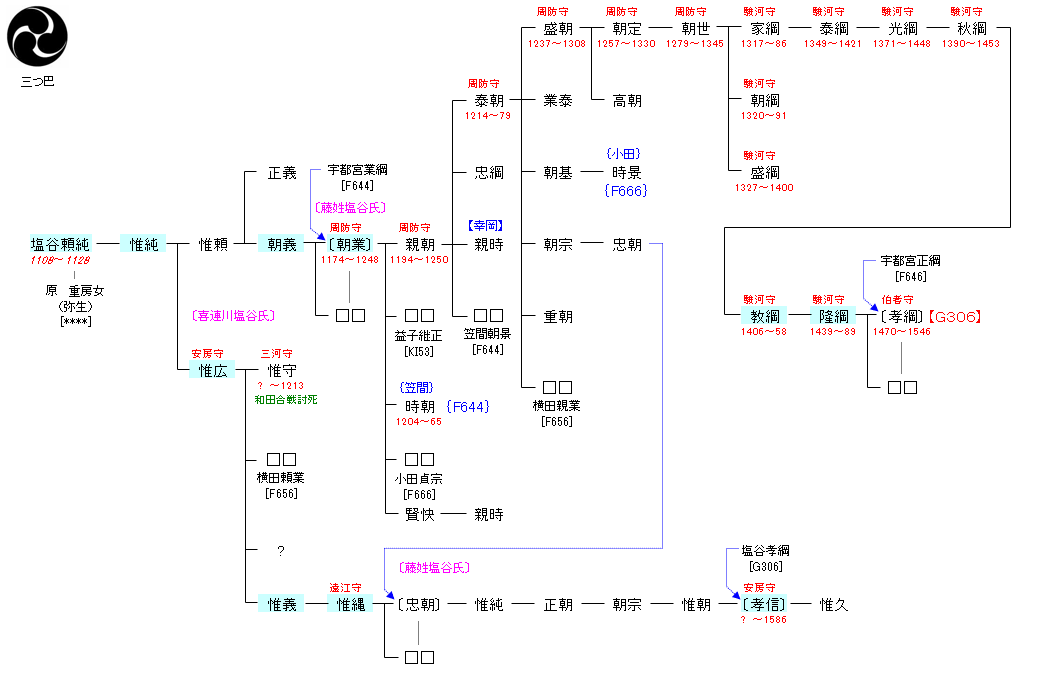 | G301:源 義親 | 源 経基 ― 源 頼信 ― 源 義親 ― 塩谷頼純 | G305: 塩谷頼純 |