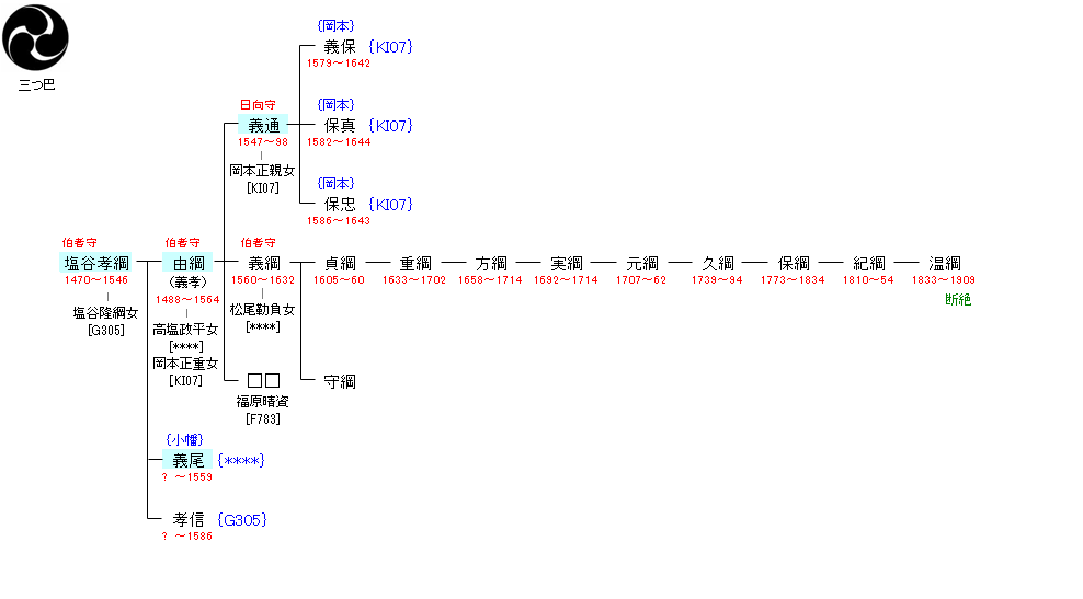 G305:塩谷頼純  源 経基 ― 源 頼信 ― 源 義親 ― 塩谷頼純 ― 塩谷孝綱 G306:塩谷孝綱