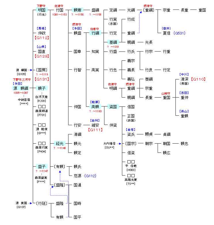 | G105:源 頼光 | 源 経基 ― 源 満仲 ― 源 頼光 ― 源 頼綱 | G109:源 頼綱 |