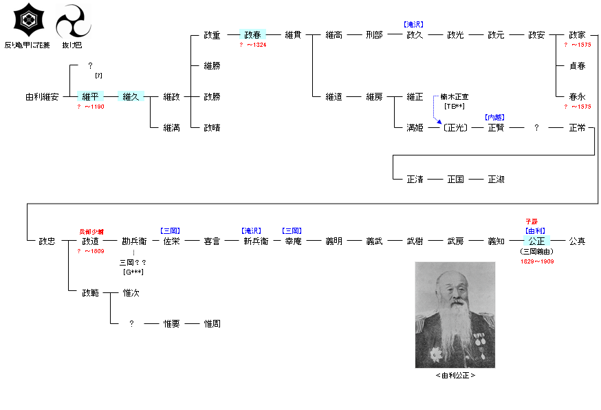 | G109:源 頼綱 | 源 経基 ― 源 満仲 ― 源 頼光 ― 源 頼綱 ― 由利維安 | G111:由利維安 | ● |