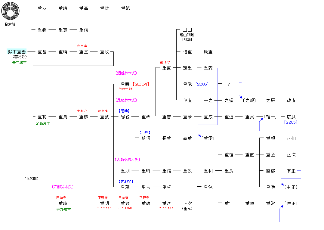 | SZ01:鈴木基行 | 穂積真津 ― 鈴木基行 ― 鈴木重善 | SZ03:鈴木重善 |