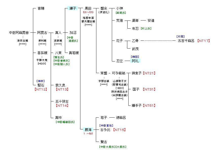 | A223:神聞勝命 | 神聞勝命 ― 中臣阿麻毘舎 | NT11:中臣阿麻毘舎 |