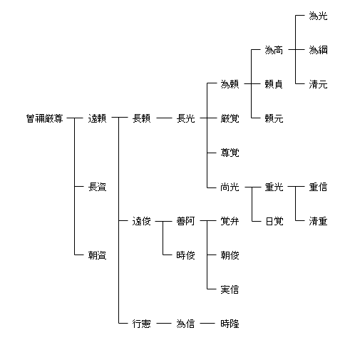 源 経基 ― 源 頼信 ― 源 義光 ― 源 義清 ― 曾禰厳尊