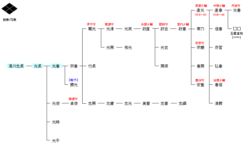 | 湯川忠長 | 湯川光長 | 湯川光春 |