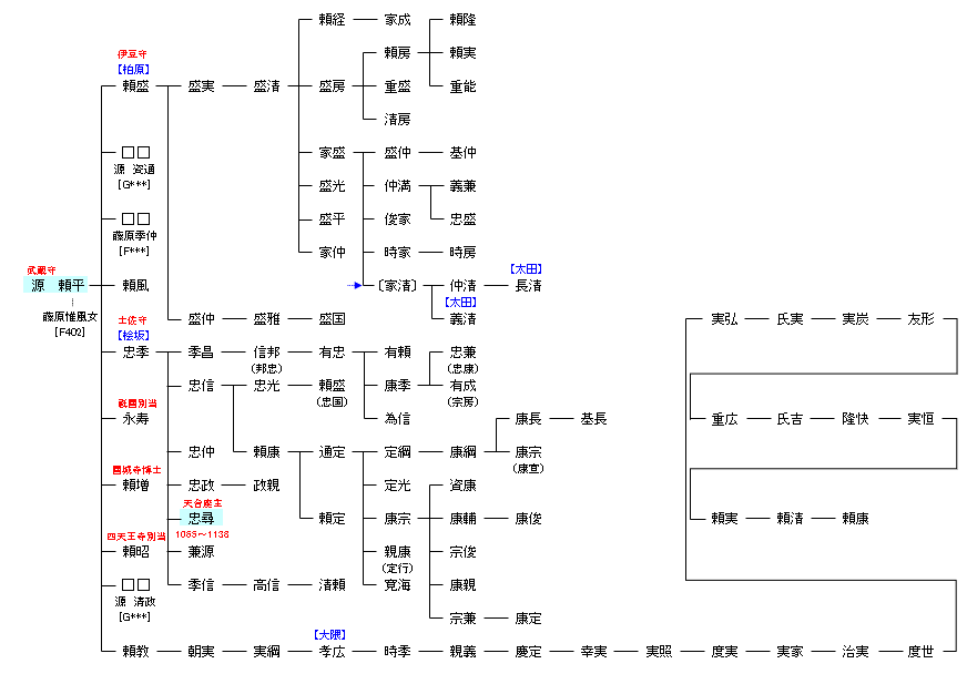 | G105:源 頼光 | 源 経基 ― 源 満仲 ― 源 頼光 ― 源 頼平 | G151:源 頼平 | ● |