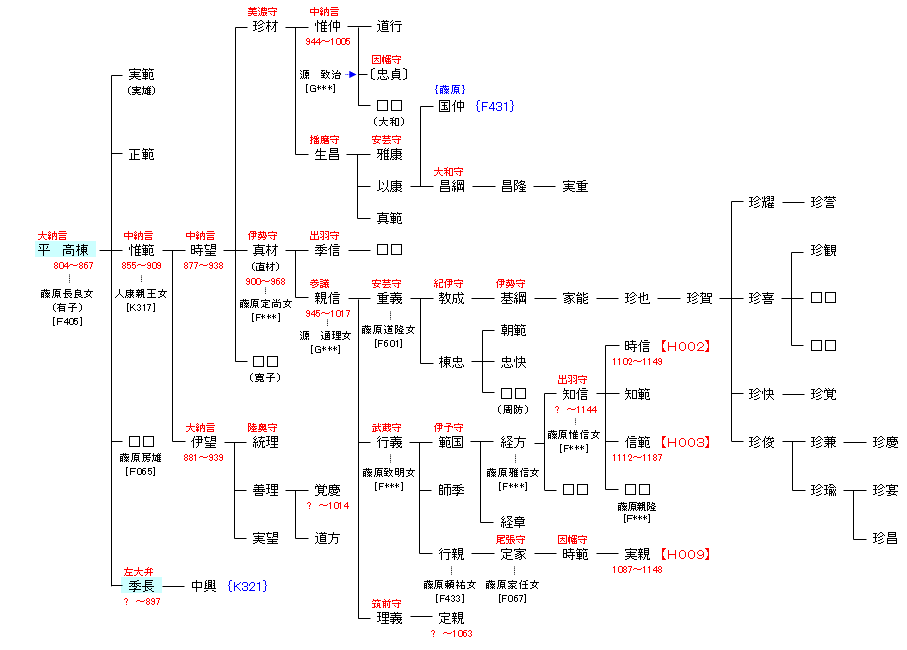 弘仁14年(823年)無位から従四位下に叙せられ、侍従に任ぜられる。天長2年(825年)父・葛原親王による再度の抗表により、伯父に当たる淳和天皇から平姓を賜与され臣籍降下し、平高棟と名乗る。承和10年(843年)40歳の時に従三位に昇叙され公卿に列した。 仁寿元年(851年)参議に任官。斉衡元年(854年)皇太子・惟仁親王(のち清和天皇)の春宮大夫を兼任し、天安2年(858年)惟仁親王の即位に伴い正三位・権中納言に叙任される。貞観元年(859年)山城国葛野郡にあった別邸を仏教修行の道場とし、「平等寺」の額を賜与された。貞観2年(860年)中納言、貞観6年(864年)大納言に至る。 身長が六尺あり、美しいひげを持っていた。幼い頃から聡明で、古くから伝えられた書物を好んで読んだ。性格が細やかで親切であり、華美に飾り立てるようなことはなかった。諸官を歴任したが政務にあたっては寛容を重視した。晩年は仏教に帰依し経典を読誦した。大納言に任ぜられてのちは食封の多くを仏事に費やしたという。