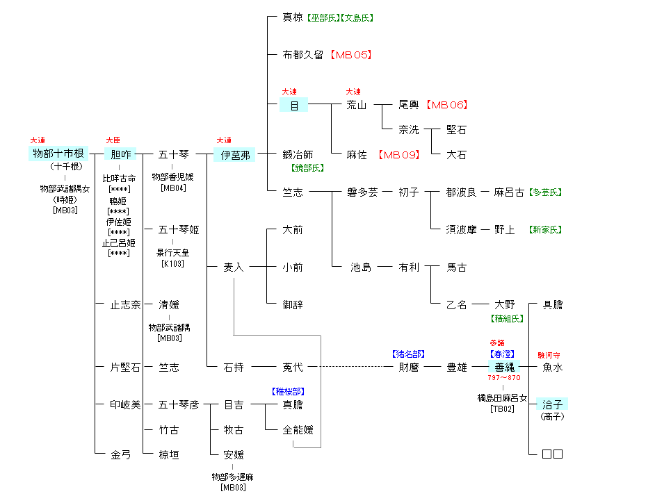 | A233:伊香色雄命 | 伊香色雄命 ― 物部十市根 | MB04:物部十市根 |