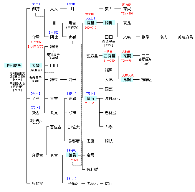 壬申の乱で大友皇子の側につき、皇子の自殺まで従った。のちに赦されて遣新羅大使となり、その後法官の仕事につき筑紫総領になった。701年に大納言となって以後、政治の中枢に携わり、右大臣,左大臣に任じられた。717年で死去するまでの数年は太政官の最高位者であった。 なお、『竹取物語』においてかぐや姫に求婚する5人の貴族の一人である「石上まろたり」のモデルであるとされる。