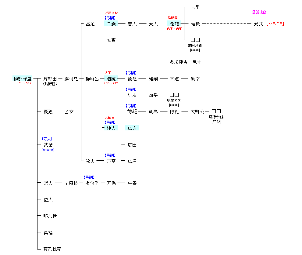 敏達天皇元年(572年)、敏達天皇の即位に伴い、守屋は大連に任じられた。 敏達天皇14年(585年)、大臣・蘇我馬子は敏達天皇に奏上して仏法を信奉する許可を求めた。天皇はこれを許可したが、この頃から疫病が流行しだした。守屋と中臣勝海は蕃神(異国の神)を信奉したために疫病が起きたと奏上し、これの禁止を求めた。天皇は仏法を止めるよう詔した。守屋は自ら寺に赴き、胡床に座り、仏塔を破壊し、仏殿を焼き、仏像を海に投げ込ませ、馬子や司馬達等ら仏法信者を面罵した上で、達等の娘善信尼、およびその弟子の恵善尼・禅蔵尼ら3人の尼を捕らえ、衣を剥ぎとって全裸にして、海石榴市の駅舎へ連行し、群衆の目前で鞭打った。 疫病は更に激しくなり、天皇も病に伏した。敏達天皇の次には馬子の推す用明天皇が即位した。守屋は敏達天皇の異母弟・穴穂部皇子と結んだ。用明天皇元年(586年)、穴穂部皇子は炊屋姫(敏達天皇の后)を犯そうと欲して殯宮に押し入ろうとしたが、三輪逆に阻まれた。怨んだ穴穂部皇子は守屋に命じて三輪逆を殺させた。馬子は「天下の乱は遠からず来るであろう」と嘆いた。守屋は「汝のような小臣の知る事にあらず」と答えた。 用明天皇2年4月2日(587年)、用明天皇は病になり、三宝(仏法)を信奉したいと欲し群臣に議するよう詔した。守屋と中臣勝海は「国神に背いて他神を敬うなど、聞いたことがない」と反対した。馬子は「詔を奉ずるべき」とし、穴穂部皇子に僧の豊国を連れて来させた。守屋は睨みつけて大いに怒った。史(書記)の毛屎が守屋に群臣たちが守屋の帰路を断とうとしていると告げた。守屋は朝廷を去り、別業のある阿都(河内国)へ退き味方を募った。排仏派の中臣勝海は彦人皇子と竹田皇子(馬子派の皇子)の像を作り呪詛した。しかし、やがて彦人皇子の邸へ行き帰服を誓ったが、その帰路、舎人迹見赤檮が中臣勝海を斬った。 守屋は一族の物部八坂,大市造小坂,漆部造兄を馬子のもとへ遣わし「群臣が我を殺そうと謀っているので、阿都へ退いた」と伝えた。4月9日、用明天皇は崩御した。守屋は穴穂部皇子を皇位につけようと図ったが、6月7日、馬子は炊屋姫の詔を得て、穴穂部皇子の宮を包囲して誅殺した。翌日、宅部皇子を誅した。 7月、馬子は群臣にはかり、守屋を滅ぼすことを決めた。馬子は泊瀬部皇子,竹田皇子,厩戸皇子などの皇子や諸豪族の軍兵を率いて河内国渋川郡の守屋の館へ向かった。このとき厩戸皇子は仏法の加護を得ようと白膠の木を切り、四天王の像をつくり戦勝を祈願して、勝利すれば仏塔を作り仏法の弘通に努めると誓い、のちに四天王寺を建立した。 迹見赤檮が大木に登っている守屋を射殺した。引き続き守屋の子らも殺害されたが、片野田と辰狐兄弟は、前者は筑前国鞍手に、後者には肥前国松浦に流罪されたという。さらに当時3歳だった那加世は家臣に護衛されて出羽国協和逆合に落ち延び、唐松神社を建立したと伝えられる。